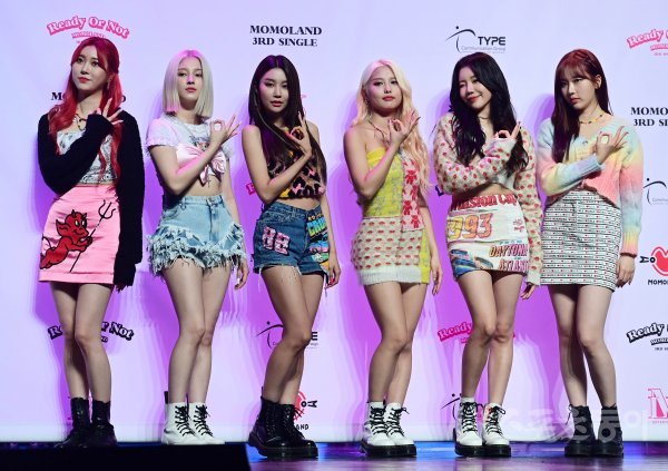 그룹 모모랜드가 17일 서울 광진구 광장동 예스24 라이브홀에서 열린 세 번째 싱글앨범 ‘Ready Or Not‘ 발매 쇼케이스에서 포즈를 취하고 있다.