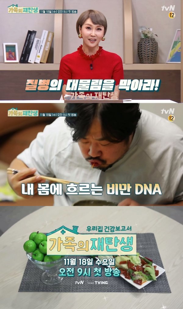 첫 방송 비만 예방 특집에서는 이은형-강재준 부부가 게스트로 활약을 펼친다. 비만이 건강을 위협하는 신종 질병으로 떠오른 가운데, \'가족의 재탄생\'은 가족력의 관점에서 비만을 바라보고 적합한 솔루션을 탐색할 계획이다. 이은형은 "(앞으로 언젠가) 2세가 건강하게 태어나지 못할까봐 걱정된다"라며 2세 계획에 대한 우려를 내비쳐 이목을 끈다.