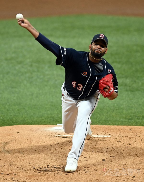 선발 투수로 등판한 두산 알칸타라가 역투하고 있다.