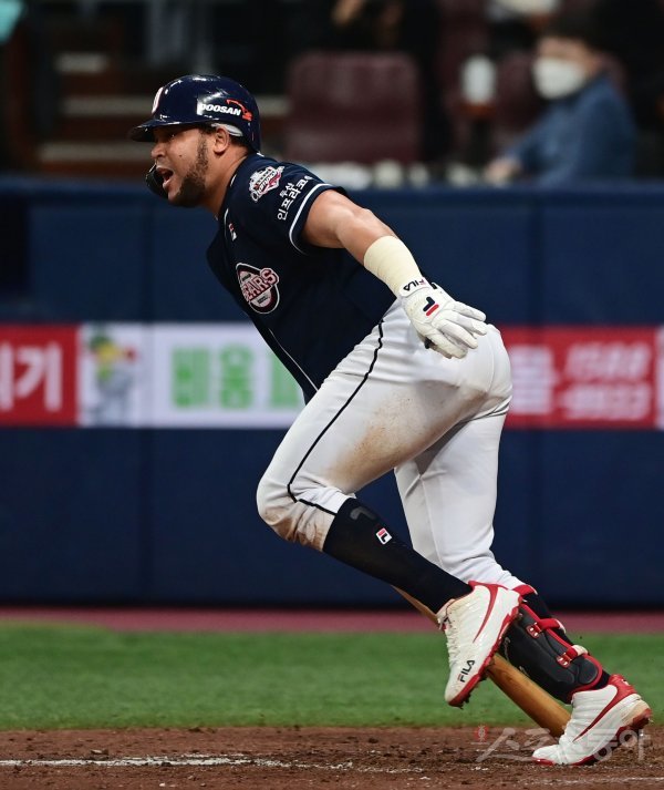 17일 서울 고척스카이돔에서 ‘2020 신한은행 SOL KBO리그’ 한국시리즈 1차전 NC 다이노스와 두산 베어스의 경기가 열렸다. 5회초 1사 만루 두산 페르난데스가 병살타를 친 뒤 아쉬워하고 있다.