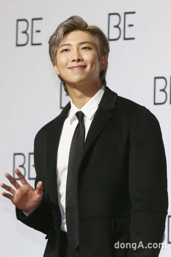 그룹 방탄소년단의 RM이 20일 오전 서울 동대문디자인플라자에서 열린 새 앨범 \'BE (Deluxe Edition)\' 발매 글로벌 기자간담회에 참석해 포토타임을 갖고 있다.