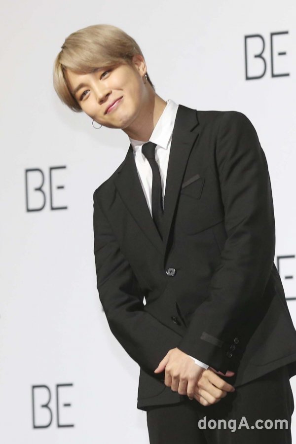 그룹 방탄소년단의 지민이 20일 오전 서울 동대문디자인플라자에서 열린 새 앨범 \'BE (Deluxe Edition)\' 발매 글로벌 기자간담회에 참석해 포토타임을 갖고 있다.