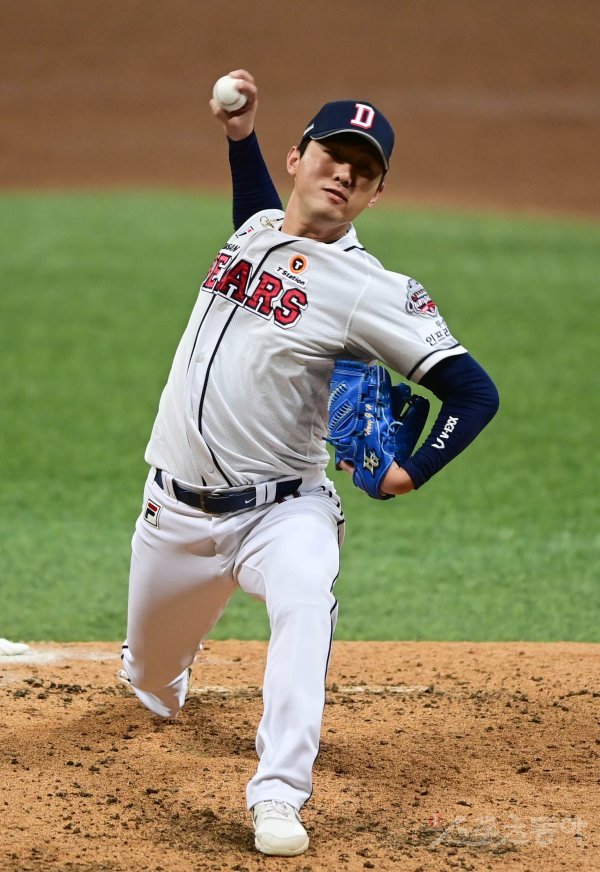 20일 서울 고척스카이돔에서 ‘2020 신한은행 SOL KBO리그’ 한국시리즈 3차전 두산 베어스와 NC 다이노스의 경기가 열렸다. 3회초 두산 홍건희가 마운드에 올라 역투하고 있다. 고척 | 주현희 기자 teth1147@donga.com