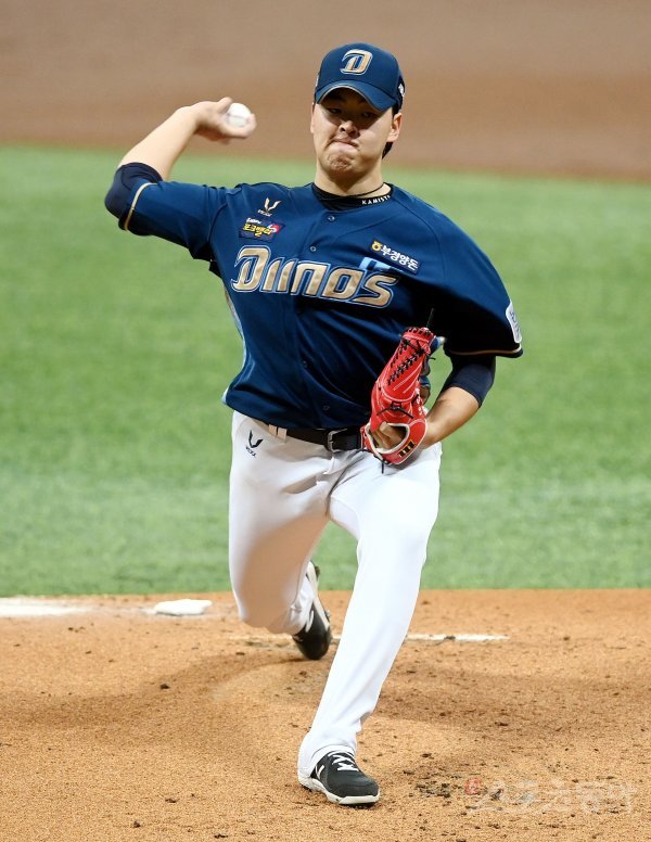 21일 서울 고척스카이돔에서 ‘2020 신한은행 SOL KBO리그’ NC 다이노스와 두산 베어스의 한국시리즈 4차전 경기가 열렸다. NC 선발투수 송명기가 힘차게 볼을 던지고 있다.