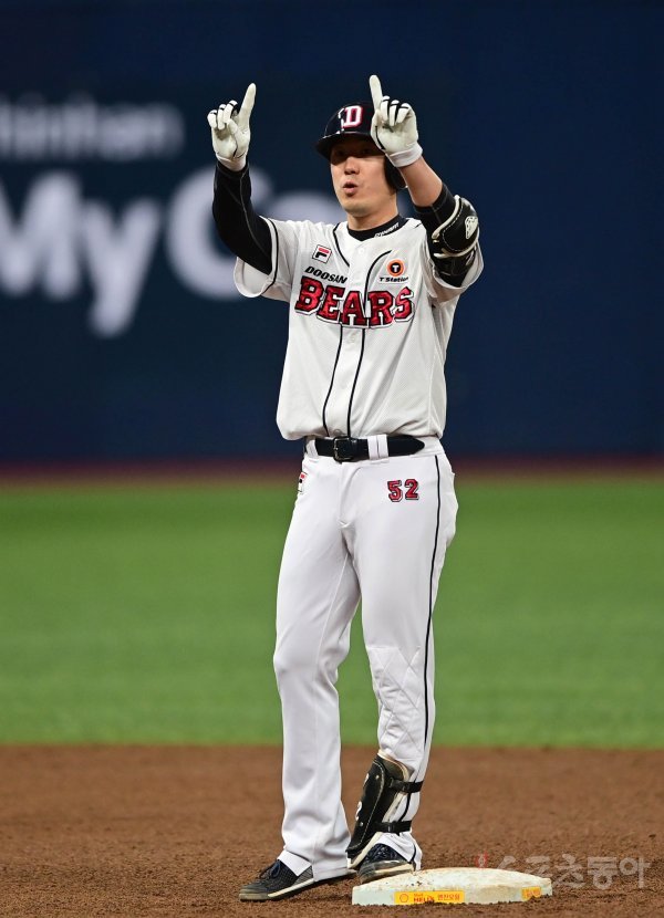 21일 서울 고척스카이돔에서 ‘2020 신한은행 SOL KBO리그’ 한국시리즈 4차전 두산 베어스와 NC 다이노스의 경기가 열렸다. 5회말 무사 두산 김재호가 좌전 2루타를 치고 있다.
