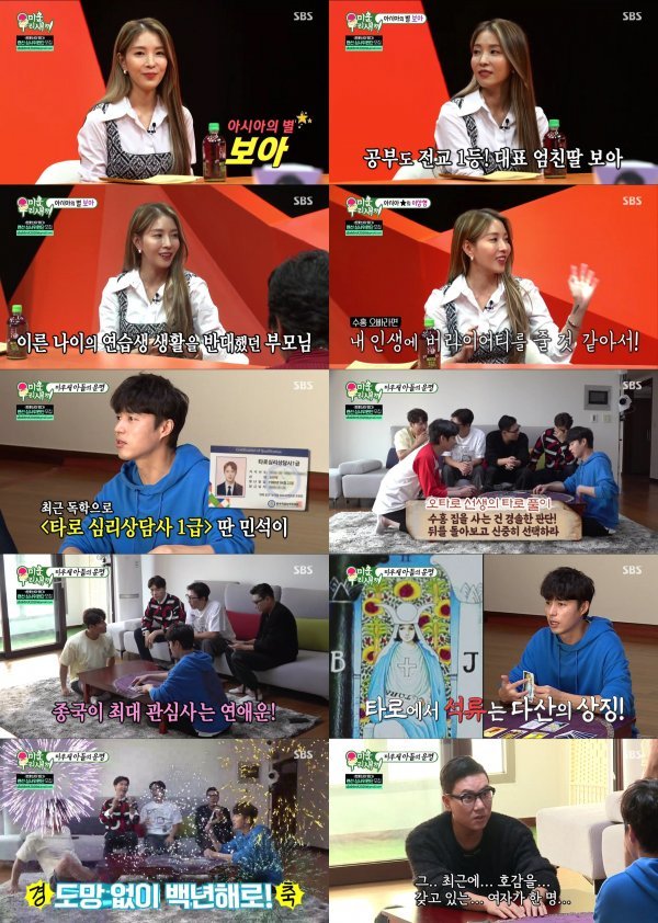이상민은 “최근에 호감을 갖는 여자가 한 명 있다”고 고백하며 운을 궁금해 했다. 카드를 확인한 오민석은 "그분이 좀 세다. 그분한테 형이 안 될 수 있다. 에너지쪽으로나 안 맞는 경우가 있다. 스트레스로 인해 휴식을 취하고 싶어한다. 하지만 희망이 있다"고 전했다.