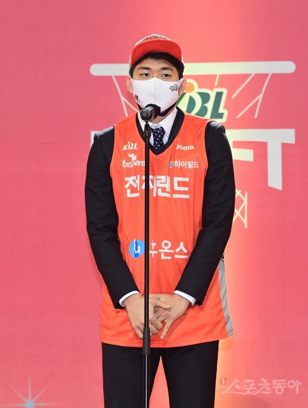 23일 서울 잠실학생체육관에서 열린 ‘2020 KBL 국내신인선수 드래프트’에서 인천 전자랜드의 지명을 받은 성균관대 이윤기가 소감을 밝히고 있다.
