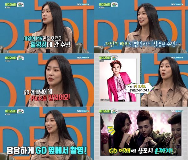 지드래곤이 피처링한 태양의 ‘I Need A Girl’의 뮤직비디오에 출연했던 달수빈. 그는 “빅뱅 선배들의 뮤직비디오인 줄 모르고 갔다. 시크한 척 앉아서 기다리고 있었는데 저 멀리서 엄청난 후광이 나오더라. 태양 선배였다. 매너 있게 대해주셔서 안정감을 느끼면서 촬영했다”고 밝혔다.