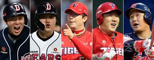 KBO는 25일 2021년 FA 자격선수 명단을 공시했다. 경쟁력 있는 FA들이 대거 시장에 나올 것으로 예상돼 팬들의 흥미를 더할 전망이다. 대어급으로 꼽히는 두산 허경민, 오재일, KIA 양현종, 최형우, 롯데 이대호(왼쪽부터)의 거취는 초미의 관심사다. 스포츠동아DB