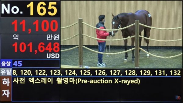 이러한 국산마 수요 증진책에 힘입어 이번 11월 국산마 경매는 회복세를 보였다. 총 169두의 1세마 중 49두가 낙찰됐다. 코로나 이전 경매(2019년 10월)와 비교 시 평균 낙찰가는 두당 480만 원 소폭 하락했으나, 낙찰두수는 8두, 총 낙찰액은 1억7000만 원 증가했다. 최고가는 최강 씨수말 ‘메니피’의 자마로 1억1000만 원에 낙찰됐다. 총 낙찰액은 22억 5100만 원 규모다.