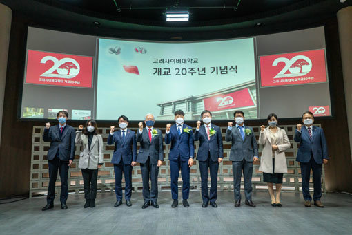 고려대사이버대는 27일 서울 종로구 계동캠퍼스 화정관에서 김재호 고려중앙학원 이사장, 정진택 고려대 총장, 장기남 고려사이버대 교우회 회장과 교직원 등 10여 명이 참석한 가운데 개교 20주년 기념식을 가졌다.김진성 총장은 온라인으로 생중계된 이날 행사에서 기념사를 통해 “설립자인 화정 김병관 박사께서 디지털세상에선 원격교육기관이 전통 대학을 앞설 것으로 내다보고 고려사이버대를 세운 이후 지금은 모든 교육현장에서 온라인 교육은 거스를 수 없는 대세가 되고 있다”고 말했다.
