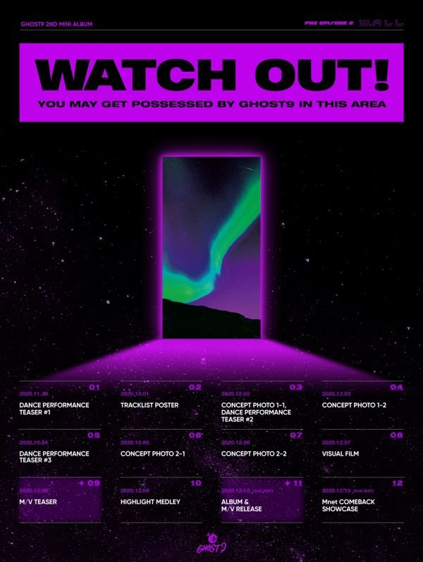 고스트나인은 오늘(30일) 0시, 공식 SNS를 통해 새 미니앨범 \'프리 에피소드 2 : 월(PRE EPISODE 2 : W.ALL)\'의 플랜 포스터를 선보이며, 본격적인 컴백 카운트다운에 돌입했다.