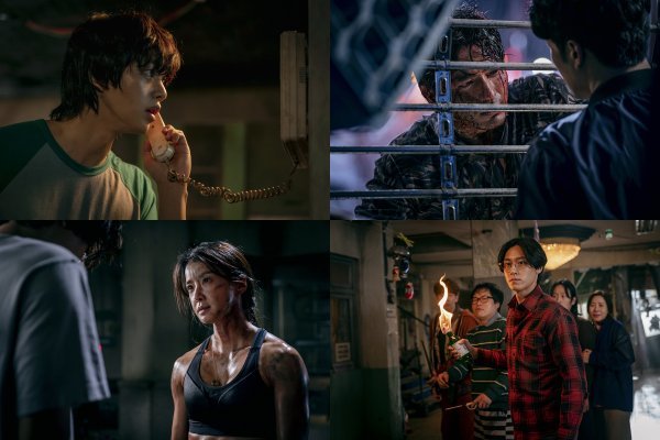 공개된 스틸에는 무시무시한 괴물과 대치하고 있는 주민들의 일촉즉발 순간들이 고스란히 담겨 있다. 욕망이 만든 괴물로 들끓는 바깥세상으로부터 고립된 그린홈 주민들은 이미 욕망에 잠식된 이웃들과 언제 괴물로 변할지 모르는 사람들 사이에서 살아남기 위해 사투를 벌이고 있다. 먼저 인터폰 너머를 바라보고 있는 현수(송강)의 스틸이 시선을 끈다. 작은 방 한켠에 위치한 컴퓨터가 세상의 전부였던 은둔형 외톨이 현수, 찾아올 사람 하나 없던 그의 집에 초인종 소리가 울려 퍼지고 인터폰을 확인한 그는 얼어붙고 만다. 문 하나를 사이에 두고 괴물과 대치한 현수의 얼굴에 떠오른 긴장감은 그를 두려움에 빠뜨린 괴물의 실체와 그가 세상 밖으로 나오게 되는 이유에 대한 궁금증을 불러일으킨다. 험악한 인상과 말투로 그린홈 주민들을 불편하게 만드는 미스터리한 과거의 편상욱(이진욱)과 특수부대 출신의 전직 소방관 서이경(이시영)은 압도적인 존재감과 범접할 수 없는 카리스마로 시선을 압도한다. 상처로 뒤덮인 얼굴과 절대 무너질 것 같지 않은 단단한 눈빛은 이진욱과 이시영이 완성한 강렬한 캐릭터와 폭발하는 액션에 대한 기대를 더한다. 그린홈의 브레인이자 리더인 이은혁으로 변신한 이도현의 색다른 모습도 이목을 집중시킨다. 그는 절체절명의 상황에서 냉철한 카리스마로 주민들을 진두지휘하며 차가운 매력을 발산할 예정이다.