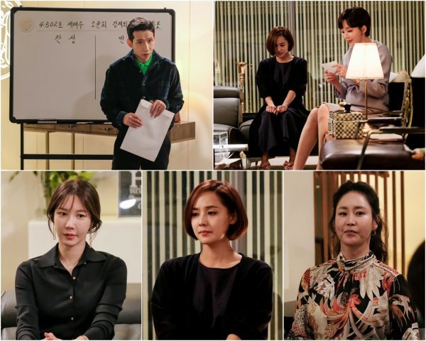 이와 관련해 이지아, 유진, 신은경, 봉태규, 윤주희가 싸늘한 분위기에 휩싸인 채 회의를 벌이는 현장이 공개됐다. 극 중 헤라팰리스 입주민들이 오윤희에 관한 강제퇴거 찬반투표를 진행하는 장면이다. 보드 앞에서 흰 봉투를 들고 있는 이규진(봉태규)이 회의를 주도하고, 헤라팰리스 입주민들은 각자 투표용지 한 장씩을 들고 있다. 반면 고개를 숙인 오윤희는 주먹을 꽉 쥐고 불안감을 드러내고 있다. 지켜보고 있는 심수련(이지아) 역시 심각한 표정을 지어 보이면서, 과연 오윤희는 이 위기를 극복하고 헤라팰리스에 남을 수 있을지 호기심을 자극하고 있다.