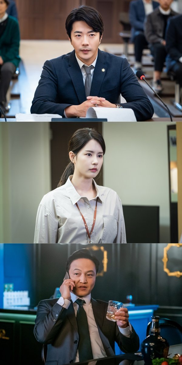 시청자들의 분노를 유발한 검사 장윤석, ‘악역 끝판왕’ 정웅인의 열연은 극의 또 다른 축을 이끌며 몰입도를 높였다. 정웅인은 “삼정시 살인사건의 억울한 누명을 썼던 피고인 세 명의 사연”을 명장면으로 꼽으며, “취재하러 온 박삼수에게 사법 피해자 최재필(정희민 분)이 과자를 건네는 장면이 콧등을 시큰하게 만들었다”고 말했다. 후반부에는 기득권을 쥔 엘리트 집단의 실체가 서서히 드러나기 시작한다. “박태용과 장윤석 사이에 묘한 신경전뿐만 아니라, 대권을 노리는 장인어른 강철우(김응수 분), 대법원장 조기수(조성하 분), 법조 설계자 김형춘(김갑수 분) 이 세 명의 보이지 않는 암투가 그려지며 시청자들의 흥미를 유발할 것”이라는 관전 포인트를 짚었다. 그는 “박태용, 박삼수의 활약도 기대되지만, 고위층 관료들의 혀를 내두르는 모습이 볼만할 것”이라고 덧붙였다.