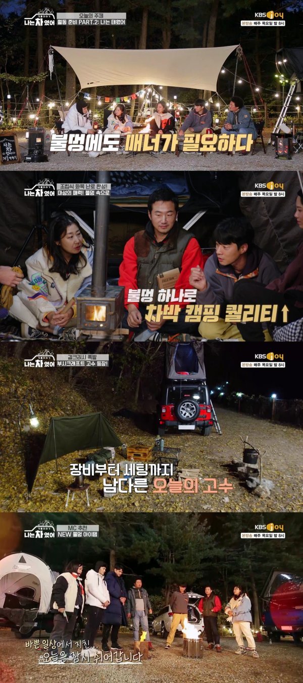 지난 3일 KBS Joy \'나는 차였어-겨울이야기\' 2회에서는 \'나는 태웠어\'를 부제로 겨울 차박에서 빠질 수 없는 \'불멍\'의 매력이 소개됐다. 라미란과 김숙, 정혁까지 3MC는 물론 윤택과 이천희, 그리고 새롭게 합류한 \'캠린이\' 류승수, 김요한은 설렘이 듬뿍 묻어나는 겨울 차박을 제대로 즐겼다.