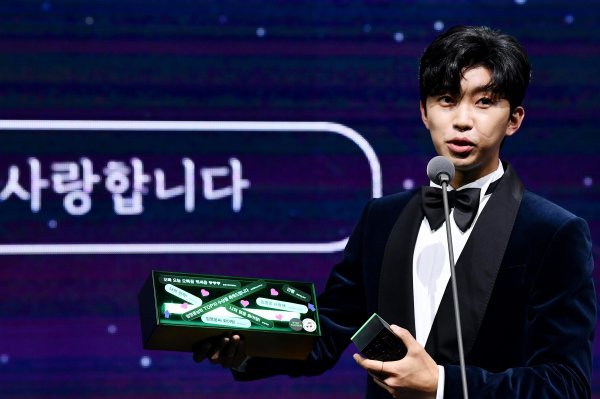 가수 임영웅이 5일 오후 열린 멜론뮤직어워드(이하 MMA 2020)에서 수상 소감을 밝히고 있다.
