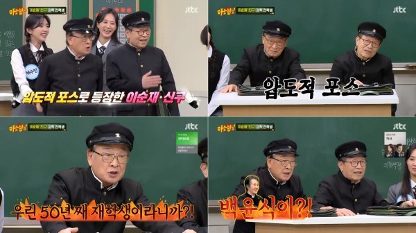 이날 깜짝 등장한 이순재와 신구는 여유롭게 웃으며 재단 이사장 포스를 드러냈다. 이수근도 “정식적으로 입학 절차를 밟고 말씀하셔야 한다. 그 전에는 안 된다”면서도 기에 눌린 듯 했다.