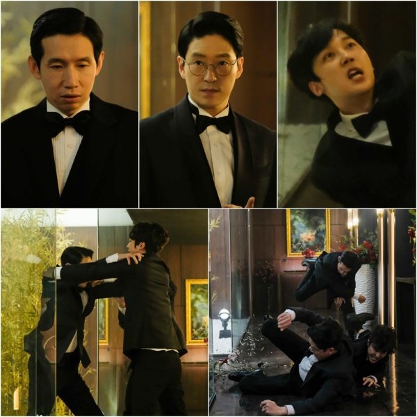 이와 관련 엄기준, 봉태규, 윤종훈이 살벌한 분위기를 자아내고 있는 ‘거친 육탄전’ 현장이 생생하게 공개됐다. 극중 주단태, 이규진, 하윤철이 분노를 참아내지 못한 채 서로의 멱살을 잡은 장면. 먼저 주단태와 하윤철이 서로의 어깨를 쥐고 힘겨루기를 하는데 이어, 이를 말리던 이규진까지 합세해 물건을 내던지면서 극한으로 치닫는다. 깔끔한 턱시도를 차려입은 세 사람이 이와는 어울리지 않는 진흙탕 싸움을 벌이고 있는 것. 과연 세 사람이 한자리에 모여 육탄전을 벌이게 된 이유는 무엇인지 궁금증을 폭발시키고 있다.
