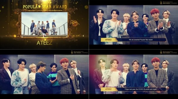 코로나19로 인해 행사가 비대면으로 진행됨에 따라 소감을 영상으로 대신한 에이티즈는 “수상만으로도 너무 영광인데, ‘인기스타상’을 주셔서 너무 감사드린다. 내년에는 코로나19가 얼른 종식돼서 팬분들을 직접 만나 뵙고, 아시아 모델 어워즈 시상식도 꼭 참석하고 싶다.”며 직접 부르는 노래에 맞춰 퍼포먼스까지 선보여 눈길을 끌었다.