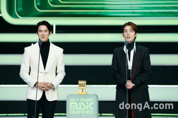 배우 유연석(왼쪽)과 정경호가 6일 오후 열린 \'2020 MAMA(엠넷 아시안 뮤직 어워드)\' 본식 행사에서 시상자로 나서고 있다.