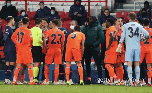 하지만 이날 경기는 전반 13분 대기심 세바스티안 콜테스쿠 심판이 판정에 항의하던 바샥셰히르의 흑인 코치 피에르 웨보를 향해 인종차별적인 발언을 하면서 중단됐다.
