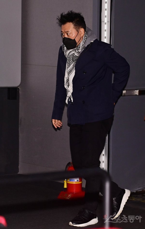 배우 지대한이 9일 서울 용산구 CGV 용산아이파크몰점에서 열린 영화 ‘개 같은 것들’ 언론시사회에 입장하고 있다.