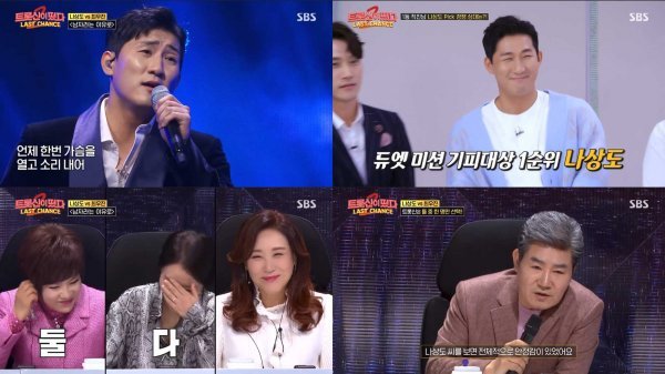 나상도와 최우진은 조항조의 ‘남자라는 이유로’를 선곡해 무대를 펼쳤다. 나상도는 호소력 짙은 보이스와 섬세한 표현력으로 곡을 완벽하게 해석해냈다. 또한, 나상도는 최우진과 완벽한 화음으로 역대급 케미를 뽐내 시청자들의 귀를 사로잡았다.