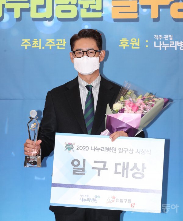 10일 오전 온라인으로 진행된 ‘2020 나누리 병원 일구상’에 참석한 LG 박용택이 일구 대상을 수상하고 있다.