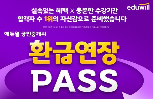 에듀윌 공인중개사 관계자는 “공인중개사는 많은 전문 지식을 요구하는 직업이다”라며 “수험생들이 합격 이후에도 실무에 잘 적응할 수 있도록 ‘2021 평생환급 평생패스’를 마련했다”고 밝혔다.