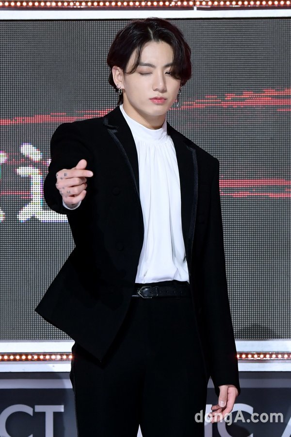 그룹 방탄소년단의 정국이 12일 오후 열린 \'2020 더팩트 뮤직 어워즈\'에 참석해 포토타임을 갖고 있다.