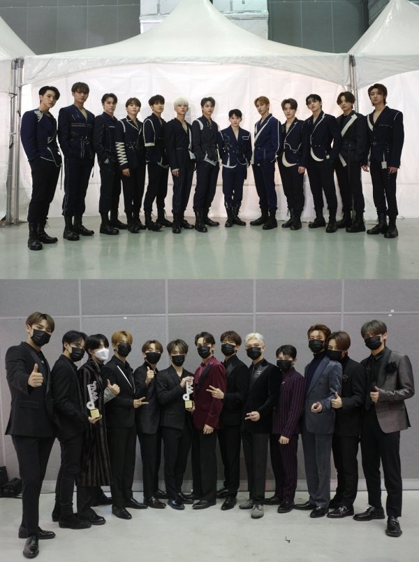 2관왕을 차지한 세븐틴은 전 세계 팬들을 향해 감사 인사를 건네며 “지금 상황에 캐럿(팬클럽 명)들을 만나지 못하지만 항상 캐럿들을 생각하며 열심히 더 멋진 음악, 퍼포먼스를 준비해 멋진 무대로 보답하는 세븐틴 되겠습니다. 감사하고 사랑합니다”라는 진심 어린 수상소감을 전했다.