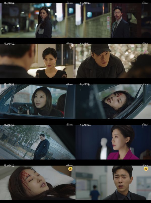 지난 13일 방송된 TV CHOSUN 토일 드라마 ‘복수해라’(연출 강민구 /극본 김효진 /제작 하이그라운드, 블러썸 스토리, 이야기사냥꾼) 8회에서 강해라(김사랑)는 FB 생명 보험사 구상권 청구와 관련한 복수를 준비하던 중 김태온(유선)이 계획한 차량 전복 사고로 절체절명 위기와 맞닥뜨렸다.