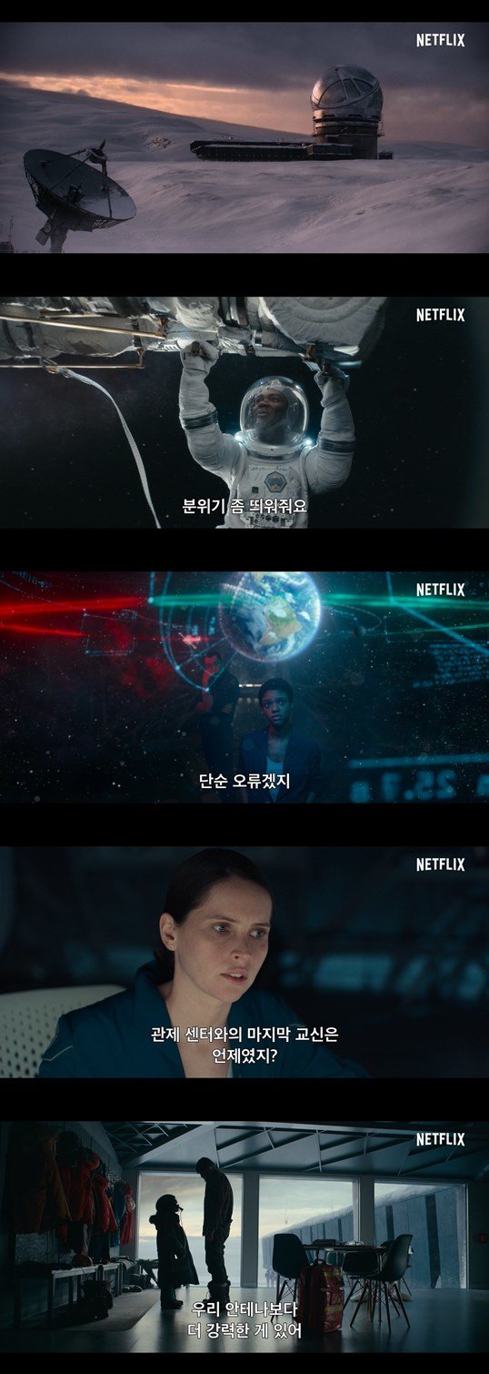 이번에 공개된 예고편은 인류의 새로운 보금자리를 찾기 위해 K-23 행성으로 떠났던 에테르호 대원들의 평화로운 모습으로 시선을 끈다. 임무를 성공적으로 마치고 미래에 대한 수많은 해답과 함께 복귀하던 이들은 갑작스러운 지구와의 통신 두절로 새로운 국면을 맞게 된다. 같은 시각 알 수 없는 이유로 종말을 맞이한 지구에서는 과학자 오거스틴이 에테르호 대원들에게 상황을 전하기 위해 교신을 시도하고 있다. 더 강력한 안테나를 찾아 북극을 가로지르는 오거스틴과 통신 장치의 결함을 고치기 위해 우주선 밖으로 나서는 에테르호 대원들, 북극과 우주라는 혹독한 상황 속에서 서로에게 닿기 위해 필사적으로 노력하는 이들의 모습이 긴장감을 자아낸다. 여기에 “외로움을 넘어서, 두려움을 이기고, 희망은 살아있다”라는 카피는 종말의 순간에서 펼쳐질 드라마틱한 이야기와 희망적인 메시지를 예고한다. 이미 종말을 맞이했지만 여전히 아름다운 지구와 우주의 고요한 풍광도 영화에 대한 기대감을 한껏 끌어 올린다.