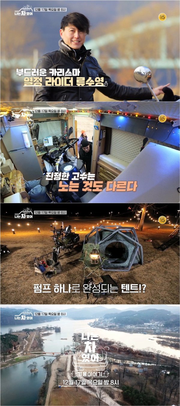 이를 위해 빛나는 손님들이 '나는 차였어-겨울이야기'를 찾는다. 바로 그 주인공은 바이크 라이딩 11년차 '카리스마 라이더' 류수영과, 소문난 연예계 캠핑 고수 빽가. 남자의 심장을 울리는 바이크와 함께 겨울 속 모토캠핑 꿀팁들이 빠짐없이 소개될 예정이다.