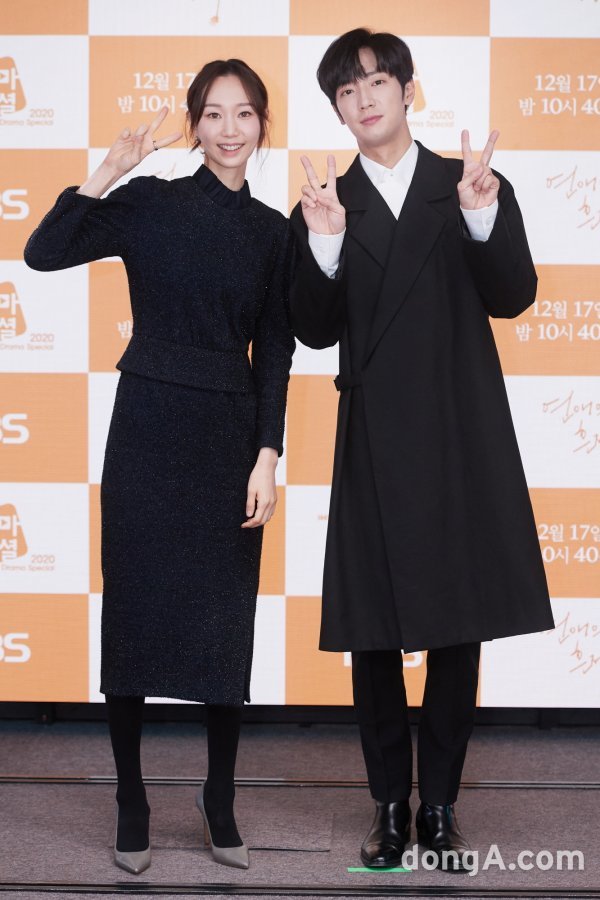 배우 이유영(왼쪽)과 이상엽이 17일 오후 온라인으로 열린 KBS 드라마 스페셜 2020 \'연애의 흔적\' 제작발표회에 참석해 포즈를 취하고 있다.