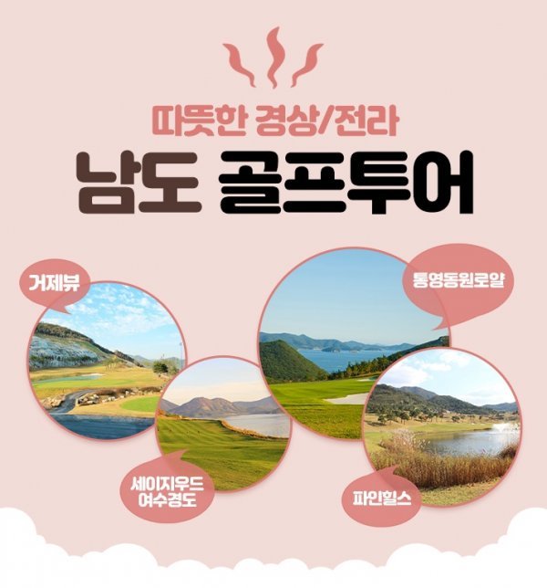 따뜻한 남해안의 중심부 거제도에 위치한 거제뷰 골프 패키지도 준비됐다. 거제뷰는 골프장을 둘러싼 35만 그루의 편백나무 숲을 그대로 살린 자연 친화적 코스에서 다도해 해상의 장관과 계절 변화를 느끼며 라운드 할 수 있다. 홀마다 해저드와 벙커를 적재적소에 배치해 초급부터 수준급 골퍼까지 기량별로 난도를 조절할 수 있으며, 36홀 그린피와 골프텔, 조식을 23만 원부터 이용할 수 있다.