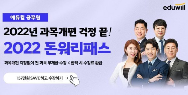 그렇기 때문에 많은 수험생들은 ‘어떤 직렬을 선택해야 할까’, ‘중간에 직렬을 변경하면 어떻게 될까’ 등 과목 개편에 대한 다양한 고민을 하기 마련이다. 이에 종합교육기업의 에듀윌 공무원은 이러한 수험생들의 고민을 해결할 수 있도록 어떤 직렬을 선택해도 전부 대비할 수 있는 ‘2022 돈워리패스’를 선보이고 있다.