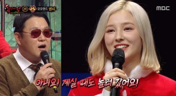 이어 징글벨의 정체가 공개됐다. 그의 정체는 모모랜드 낸시. 낸시는 “그리랑 6학년 때부터 예능을 했다. 김구라 집에 놀러간 적도 있다. 김구라가 잠옷 입고 있을 때도 있다. 최근에 김구라랑 촬영을 했는데 이름을 기억해주셔서 고마웠다”고 김구라와의 친분을 언급했다.