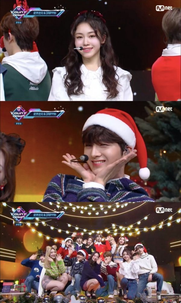 로켓펀치(연희, 쥬리, 수윤, 윤경, 소희, 다현)와 드리핀(차준호, 황윤성, 김동윤, 이협, 주창욱, 알렉스, 김민서)은 24일 오후 6시 방송된 Mnet ‘엠카운트다운’에 출연해 크리스마스 스페셜 스테이지를 꾸몄다.