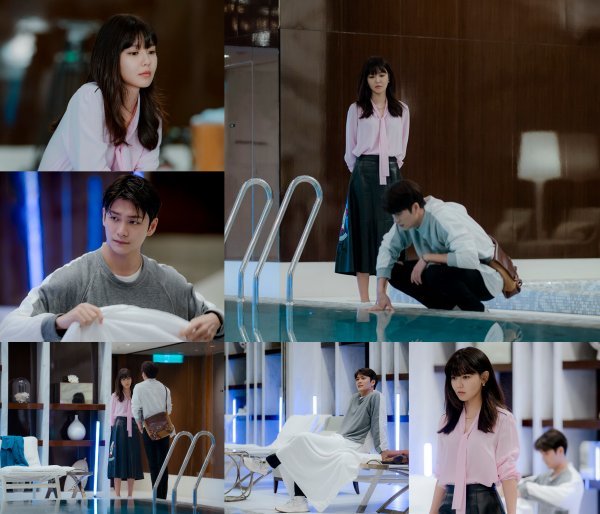 그리고 드디어 오늘(24일), 서로에 대해 궁금해했던 단아와 영화가 처음으로 만난다. 본방송에 앞서 공개된 스틸 컷을 통해 첫 만남의 배경이 단아의 수영장임을 알 수 있다. 그녀는 혼자만의 시간을 갖고 잠시 머리를 식히는 공간으로 수영장을 이용했던 바. 그런 사적인 공간에 ‘낯선 이’ 영화가 어떻게 들어오게 됐는지도 궁금증을 일으킨다. 또한, 앞선 예고 영상에서도 “굉장히 싸가지가 없으시네요”란 굉장히 솔직한 첫 인상을 전한 영화에게 “왜 쪼개요”라고 대응했던 단아의 티키타카가 그려진 바. “뾰족한 게 매력”이라는 이들 커플만의 이야기가 더욱 기다려진다.