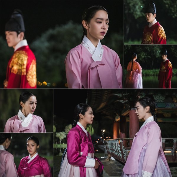 그런 가운데 공개된 사진에는 문제의 그날 밤, 호숫가에서 철종과 조화진을 만나는 김소용의 모습이 담겨있어 호기심을 자극한다. 철종을 뒤로한 김소용에겐 슬픔이 가득하다. ‘저 세상’ 영혼이 깃든 중전 김소용이 보았던 환영처럼 ‘찐’소용의 기억 속에 철종은 늘 차갑기만 했다. 철종에게 무언가 이야기하는 애틋한 김소용과 냉랭한 철종의 분위기가 호기심을 자극한다. 가까워질 수 없는 이들의 거리감이 두 사람의 관계를 짐작게 한다. 반면, 조화진을 매섭게 쏘아보는 김소용의 날카로운 눈빛도 흥미롭다. 한 치의 물러섬 없이 서로의 눈을 응시하는 두 사람 사이엔 팽팽한 긴장감이 감돈다. 김소용의 한마디에 시선을 회피하는 조화진, 그의 당황스러운 표정에 담긴 의미는 무엇일지 궁금증을 더한다.