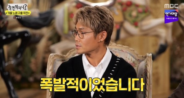 이날 유재석은 “왜 얼굴 없는 가수로 활동했냐”고 물었고, 김범수는 “방송을 한 번 출연했는데 앨범 판매량이 뚝 떨어졌다. 웃기려고 한 얘기는 아니다. 앨범 판매량이 진짜 떨어진지는 모르겠다. 근데 회사에서 안 되겠다고 들어가자 했다”고 답했다.