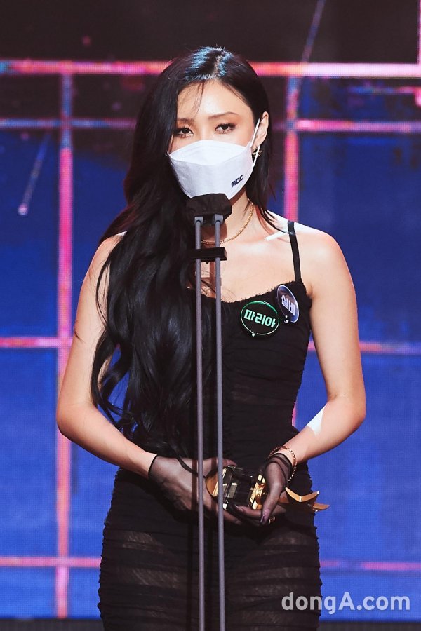 가수 화사가 29일 오후 열린 \'2020 MBC 방송연예대상\'에서 버라이어티 부문 최우수상을 받고 있다.