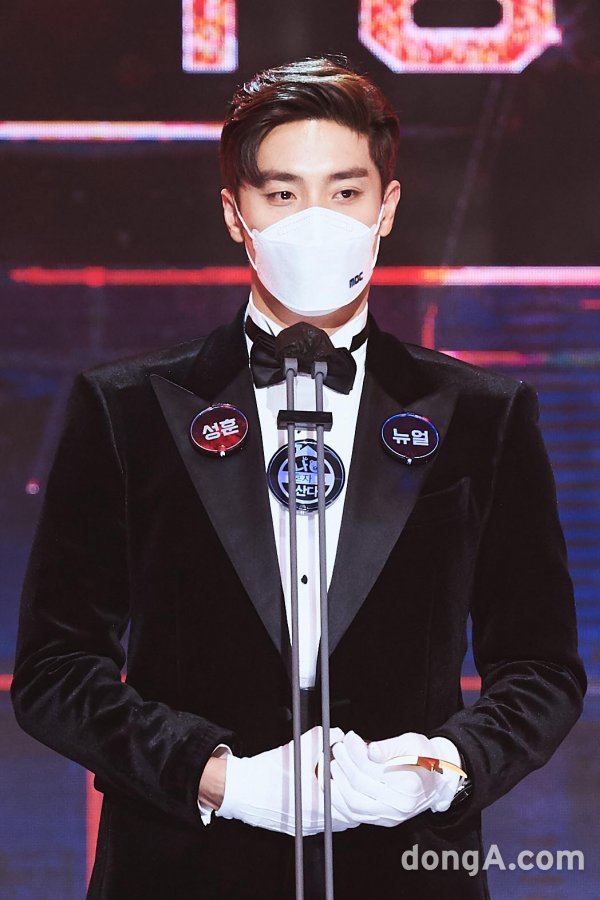 배우 성훈이 29일 오후 열린 \'2020 MBC 방송연예대상\'에서 버라이어티 부문 최우수상을 받고 있다.