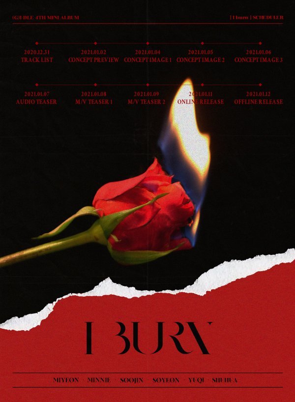 큐브 엔터테인먼트는 30일 0시 (여자)아이들 공식 SNS 채널을 통해 미니 4집 \'I burn\'(아이 번)의 스케줄 티저 이미지를 공개했다.