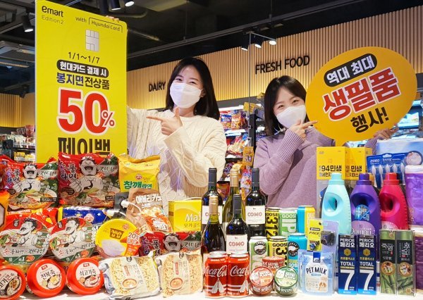 편의점 이마트24가 2021 신축년 새해를 맞아 1월 한 달간 ‘생활필수품 할인 행사’를 진행한다. 신종 코로나바이러스 감염증(코로나19) 여파로 인근 편의점에서 생활필수품을 구매하는 고객이 늘어난 것에 착안했다. 7일까지 봉지면 전 상품을 현대카드로 결제 시 50% 페이백 이벤트도 연다.