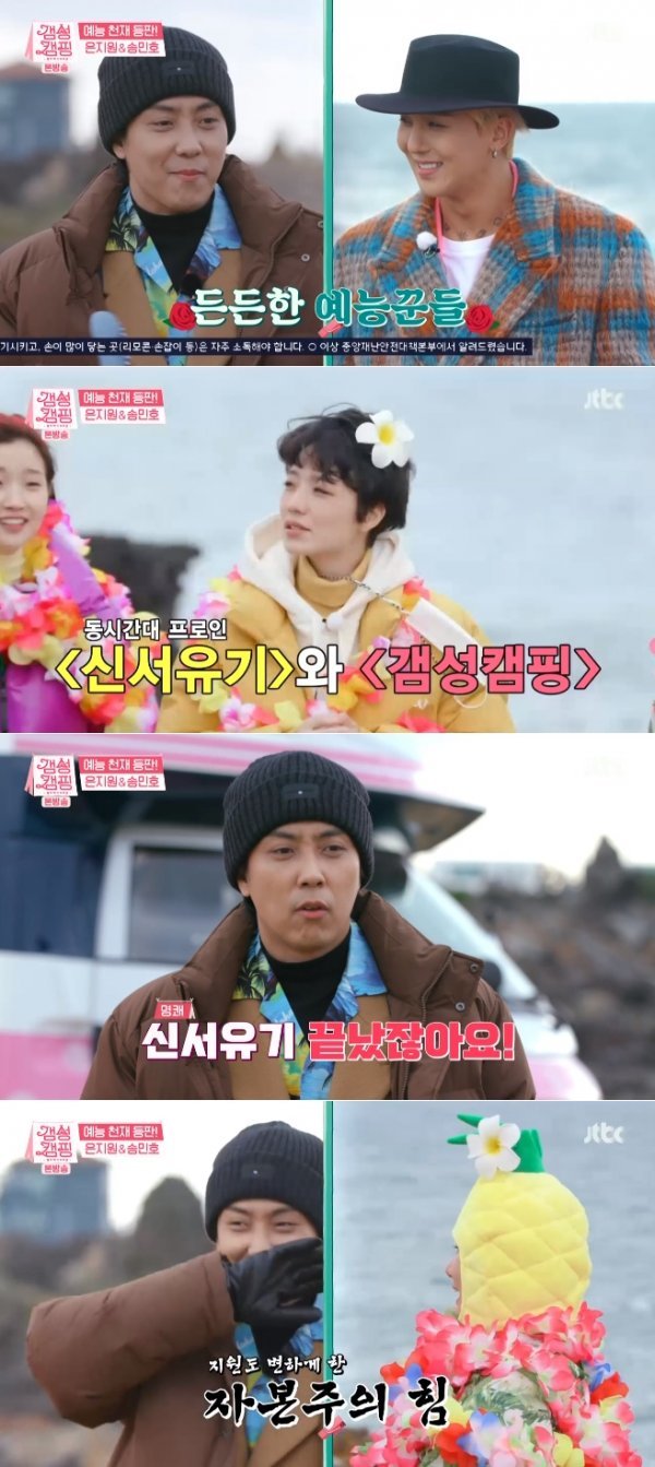 1일 방송된 JTBC ‘갬성캠핑’은 은지원 송민호가 게스트로 함께한 가운데 제주도 여행이 그려졌다.