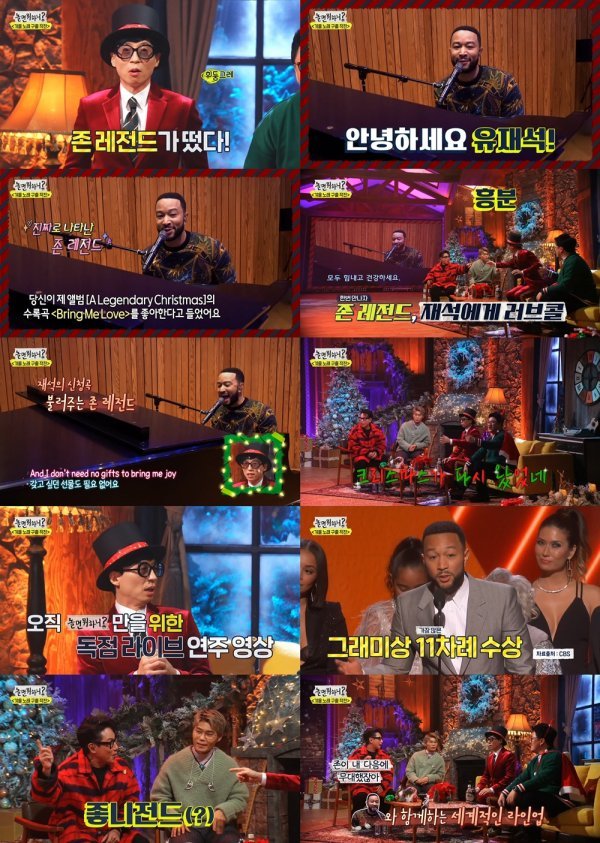 존 레전드는 유재석이 자신의 노래를 좋아한다고 말한 영상을 봤다며 “이 선물을 당신에게, 그리고 한국의 팬들에게 전하고 싶다. 제 음악이 여러분의 마음에 사랑을 가져다줬으면 좋겠다”고 마음을 전했다. 마성의 보이스로 직접 피아노를 연주하며 ‘브링 미 러브’를 열창, 크리스마스를 재소환하는 마법 같은 시간을 선물했다. 유재석은 “마이 브로”를 외쳤고, 직접 만나고 싶다는 존 레전드의 러브 콜에 “오늘 내 생일이다!”라며 감격을 드러냈다.