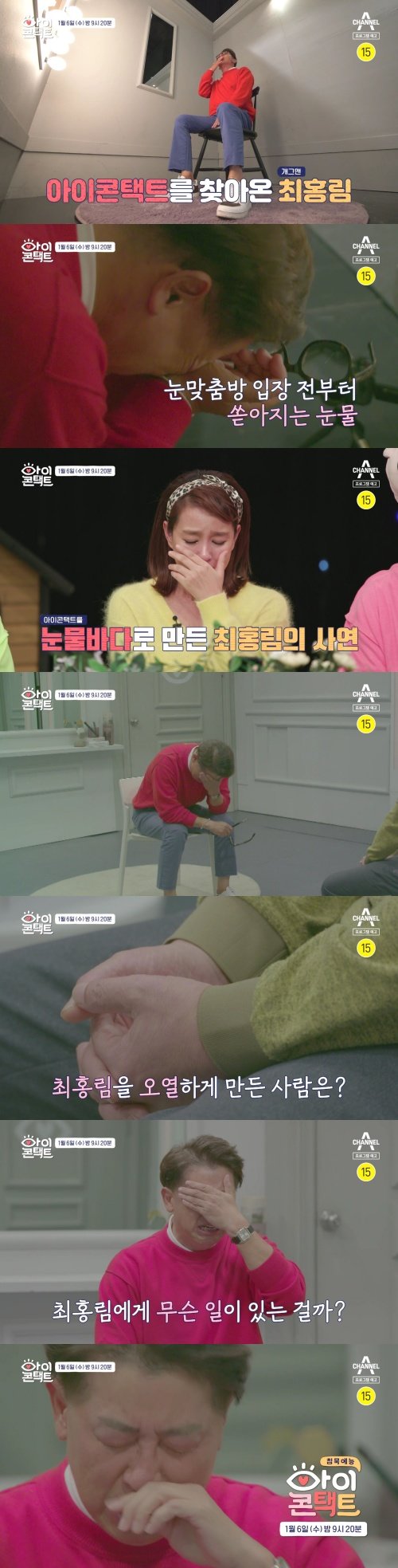 6일 방송될 채널A ‘아이콘택트’ 예고편은 개그맨 겸 골퍼로 방송에서 자주 유쾌한 모습을 보여 온 최홍림이 흔들리는 눈빛과 함께 대기실에 앉아 있는 모습으로 시작된다. 보통 대기실에서는 조용히 긴장하거나 설레는 표정을 지었던 다른 출연자들과 달리, 최홍림은 눈맞춤방 입장 전부터 고개를 숙이고 감정을 추스르지 못하며 ‘폭풍 눈물’을 떨궜다.